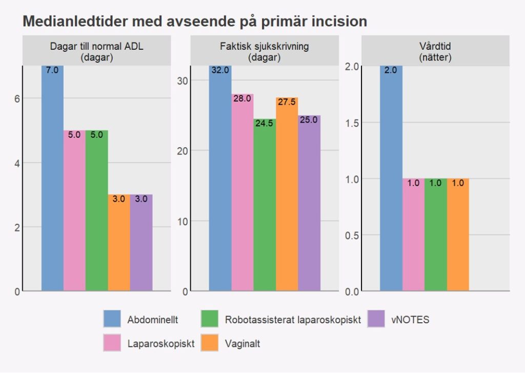 • VNOTES: 3 dagar till vardaglig funktion, 25 dagars sjukskrivning, 1 vårdnatt